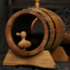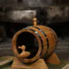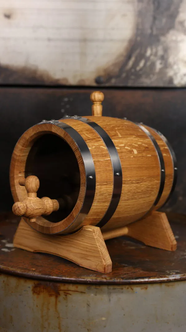 Täydellinen tarvikesetti sisältyy toimitukseen: massiivinen tammijalusta, tammihana ja tammisulkija — kaikki, mitä tarvitset tynnyrin käyttöön ottamiseen heti.