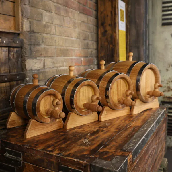 Disse kompakte eikefatene er laget for smaksutvikling i små volumer og bringer tradisjonelt bøkkerhåndverk inn i et format som passer til hjemmebarer, smakinger og dekorasjon.